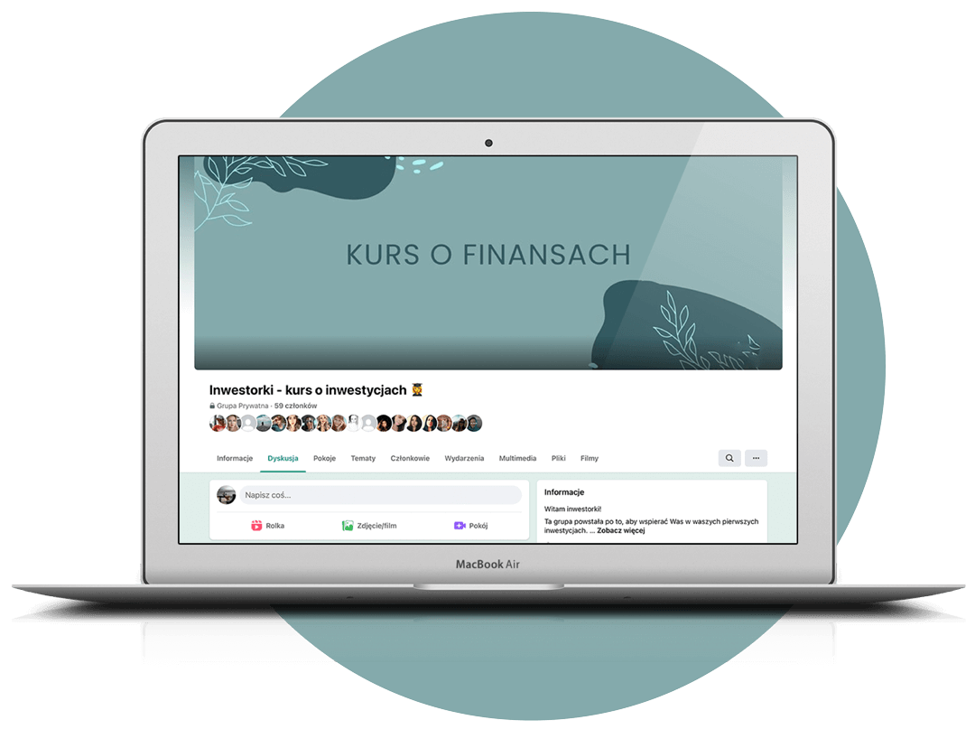 Dodatkowo otrzymasz bezterminowy dostęp do grupy na Facebooku. Możesz na niej zadać swoje pytania i uzyskać wsparcie ode mnie i innych inwestorek. Kurs jest w pełni online i odbywa się na pięknej różowej platformie. Masz do niego nieograniczony dostęp, więc możesz pracować w swoim tempie.