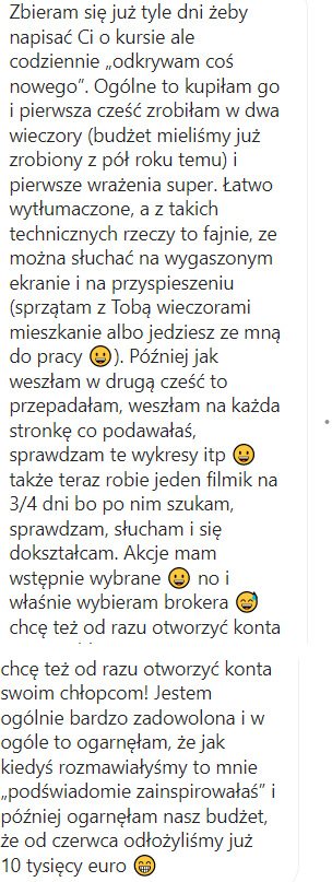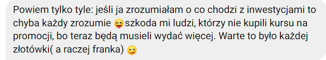 Tak – mimo, że najpierw polecam mieć poduszkę finansową to wiedza zawarta w tym kursie jest uniwersalna i potrzebna na całe życie – zacznij zbierać pieniądze na poduszkę, a w międzyczasie dokształcaj się finansowo.